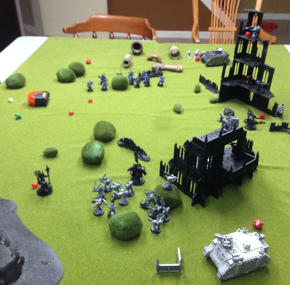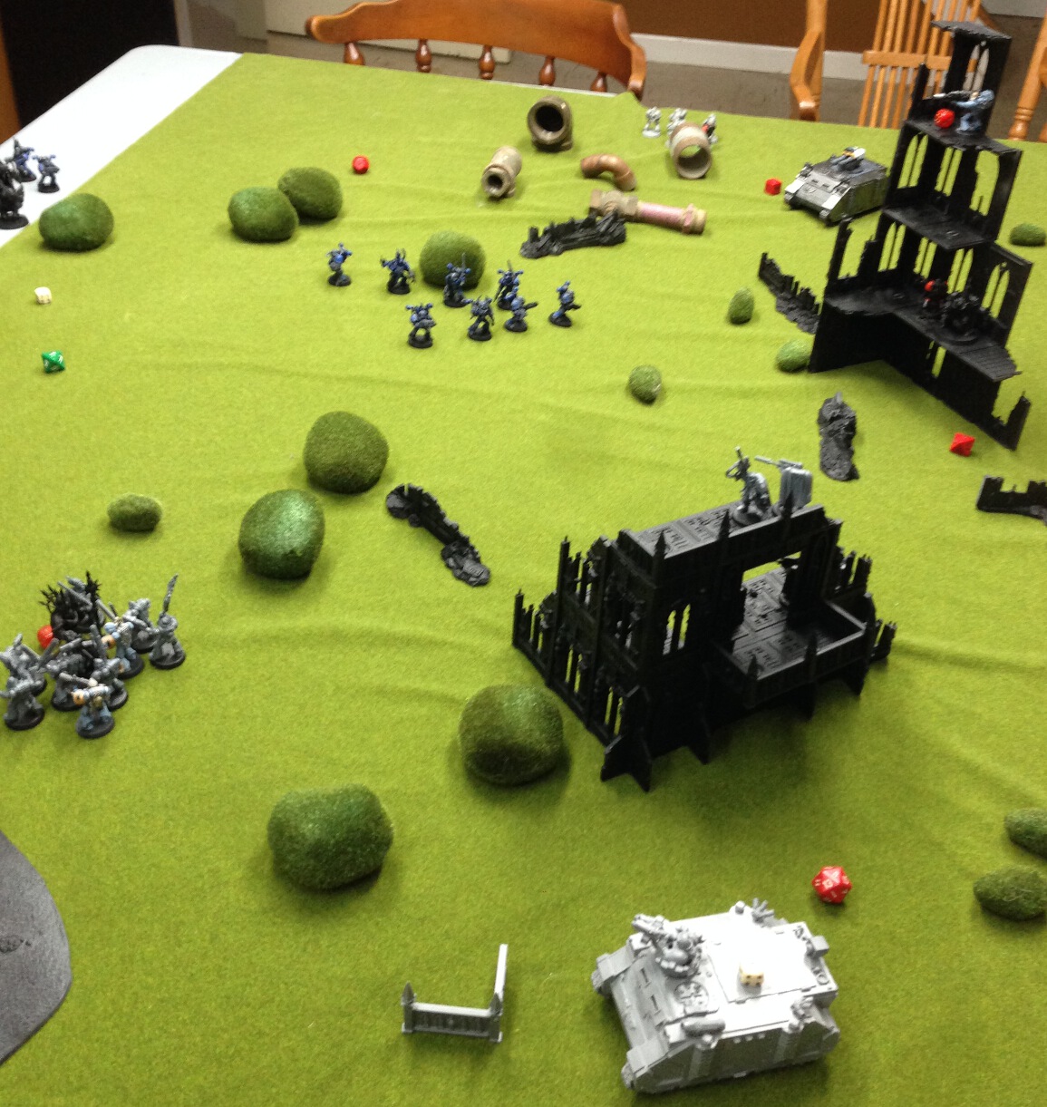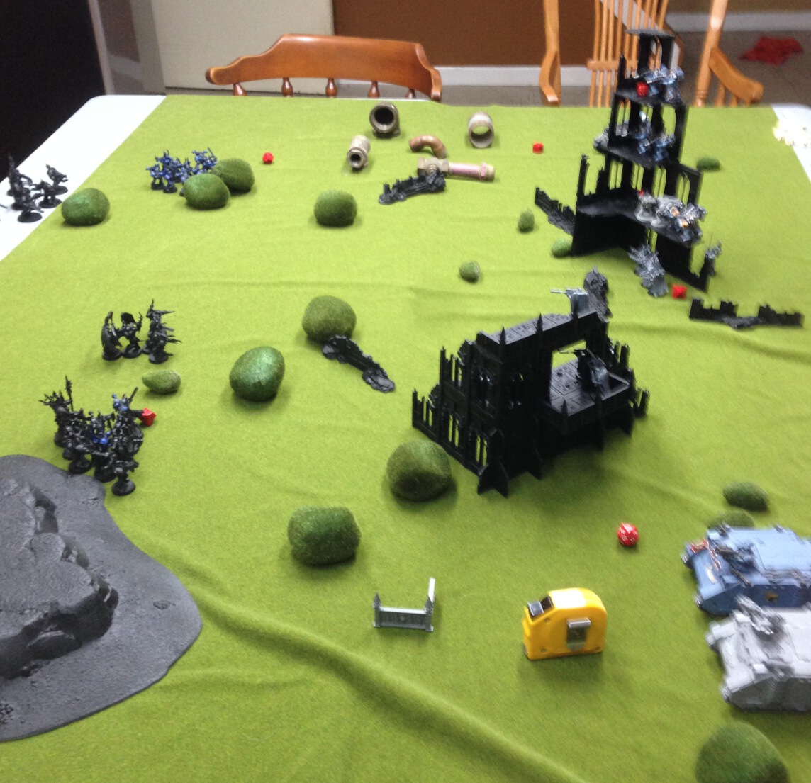 Wolves hold 3 objectives. First blood. (Sure didn't manage to kill the warlord! Parricidius makes it off to slaughter space marines another day.)